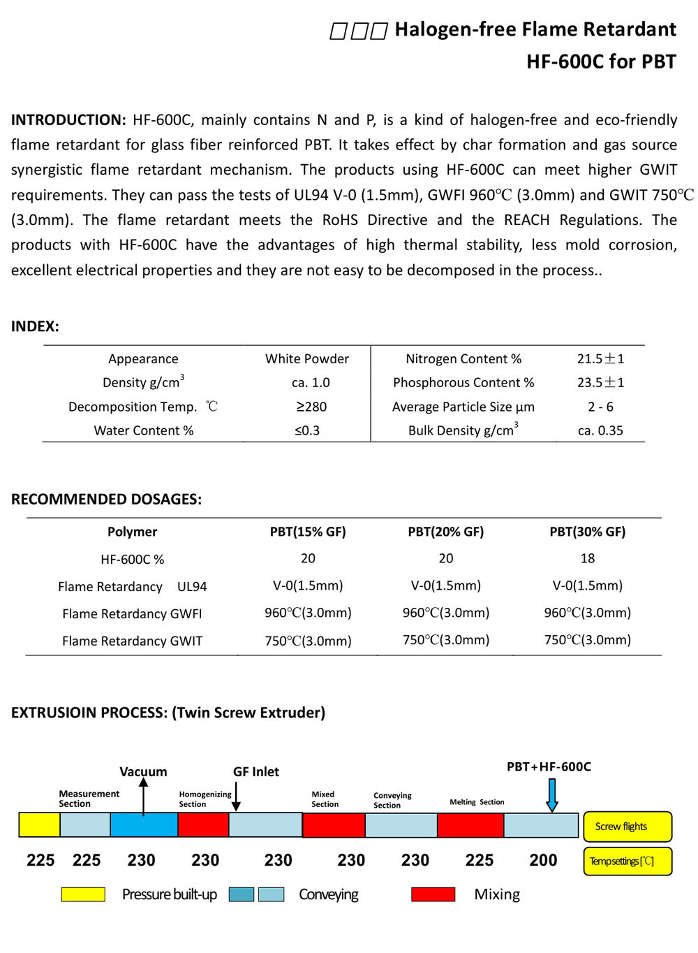 Product Name:HALOGEN-FREE FLAME RETARDANT HF-600C FOR PBT