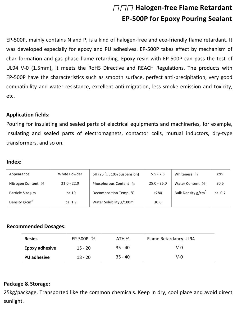 Product Name:HALOGEN-FREE FLAME RETARDANT EP-500P FOR EPOXY POURING SEALANT